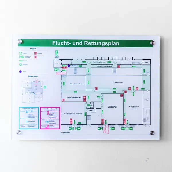 Ein besonderer Schwerpunkt liegt auf der Ausbildung von Brandschutzhelfern gemäß DGUV Information. Diese qualifizierte Schulung vermittelt alle erforderlichen Kenntnisse, um im Ernstfall schnell, sicher und richtig zu handeln – von der Brandmeldung über die Erstmaßnahmen bis zum gezielten Einsatz von Löschmitteln.Im Vordergrund jeder Schulung steht die Sicherheit Ihrer Mitarbeiter. Gut geschultes Personal ist mit den wichtigsten Notfallmaßnahmen vertraut, kann Panik verhindern und trägt aktiv dazu bei, Schäden zu minimieren – ein zentraler Bestandteil Ihres betrieblichen Brandschutzkonzepts.Wir erstellen für Sie Flucht- und Rettungspläne – rechtssicher und praxisnah. Basierend auf den gesetzlichen und behördlichen Vorgaben fertigen wir individuelle Flucht- und Rettungspläne, Feuerwehrpläne (inkl. Abstimmung mit den zuständigen Behörden und der Feuerwehr) sowie Feuerwehrlaufkarten. Alle Pläne werden exakt auf Ihre baulichen und betrieblichen Gegebenheiten abgestimmt.